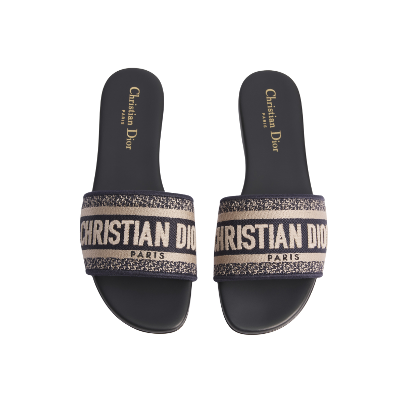 Dway Slide Deep Blue Embroidered Cotton